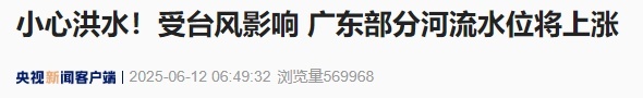 据央视新闻报道,受今年第1号台风“蝴蝶”影响,6月13日-15日,广东省有一次暴雨到大暴雨局部特大暴雨过程,广东省江河将出现2-6米左右的涨水过程。其中,北江、东江、韩江、鉴江等主要江河将出现明显涨水,部分江河支流和中小河流将超过警戒水位,个别中小河流可能发生洪水。